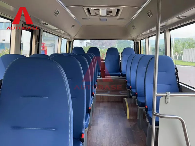 パフォーマンスと信頼性を重視して設計された 7.2 メートルのピュア電気バスには、洗練されたフロントとリアのエア サスペンション システムが装備されています。これにより、都市のさまざまな地形で驚くほどスムーズで安定した走行が保証されます。勾配を容易に処理できる最大登坂勾配 25%、最高速度 80 km/h など、優れた性能を誇り、都市および郊外の効率的な循環に最適です。インテリアは、乗客の快適性と運用効率を最適化するように考え抜かれた構成になっています。実用的な 2+1 シート配列が特徴で、座席定員は 22 名の乗客と 1 名のドライバーになります。このレイアウトはスペースの利用効率を最大化し、快適な座席を確保しながら乗客の流れをスムーズにします。キャビンは低床エントリーで設計されており、高齢者や足の不自由な方を含むすべての乗客のアクセシビリティを高めています。